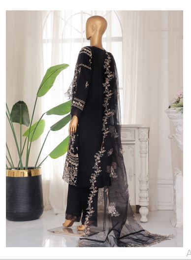 Step into elegance with Bin Saeed Black Chiffon Stitched Pakistani Three Piece, a luxurious ready-to-wear party outfit designed for women who love timeless black sophistication.
