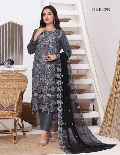 Discover elegance with HANIYA EKR-4299 Stitched Pakistani Three Piece, specially designed for women who love ready-to-wear luxury party outfits.