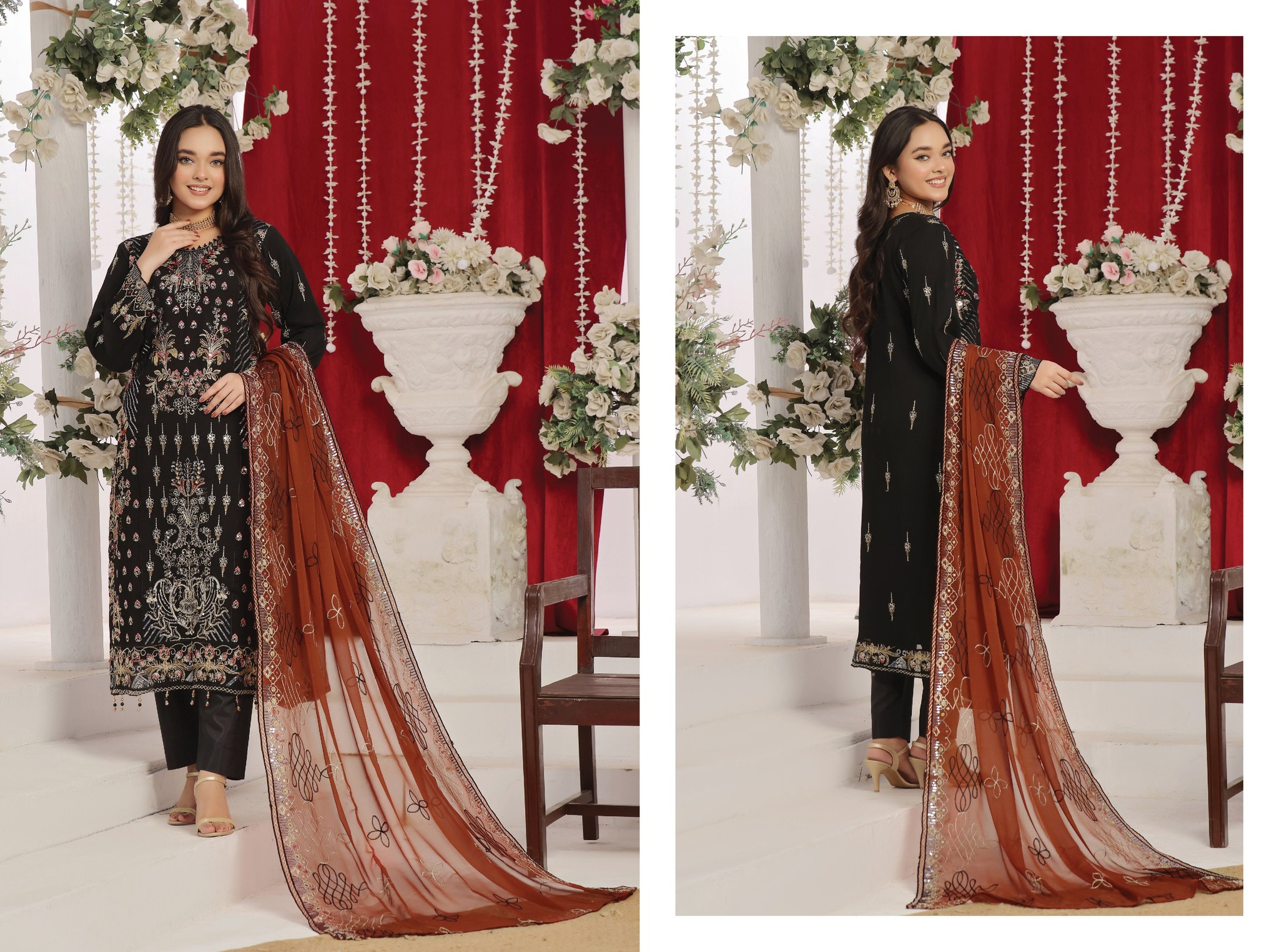 Designed for weddings, parties, and festive occasions, this unstitched Pakistani dress offers luxurious fabric quality, intricate detailing, and a graceful traditional look. The rich embroidery and elegant design make it an ideal choice for women who appreciate authentic Pakistani fashion.